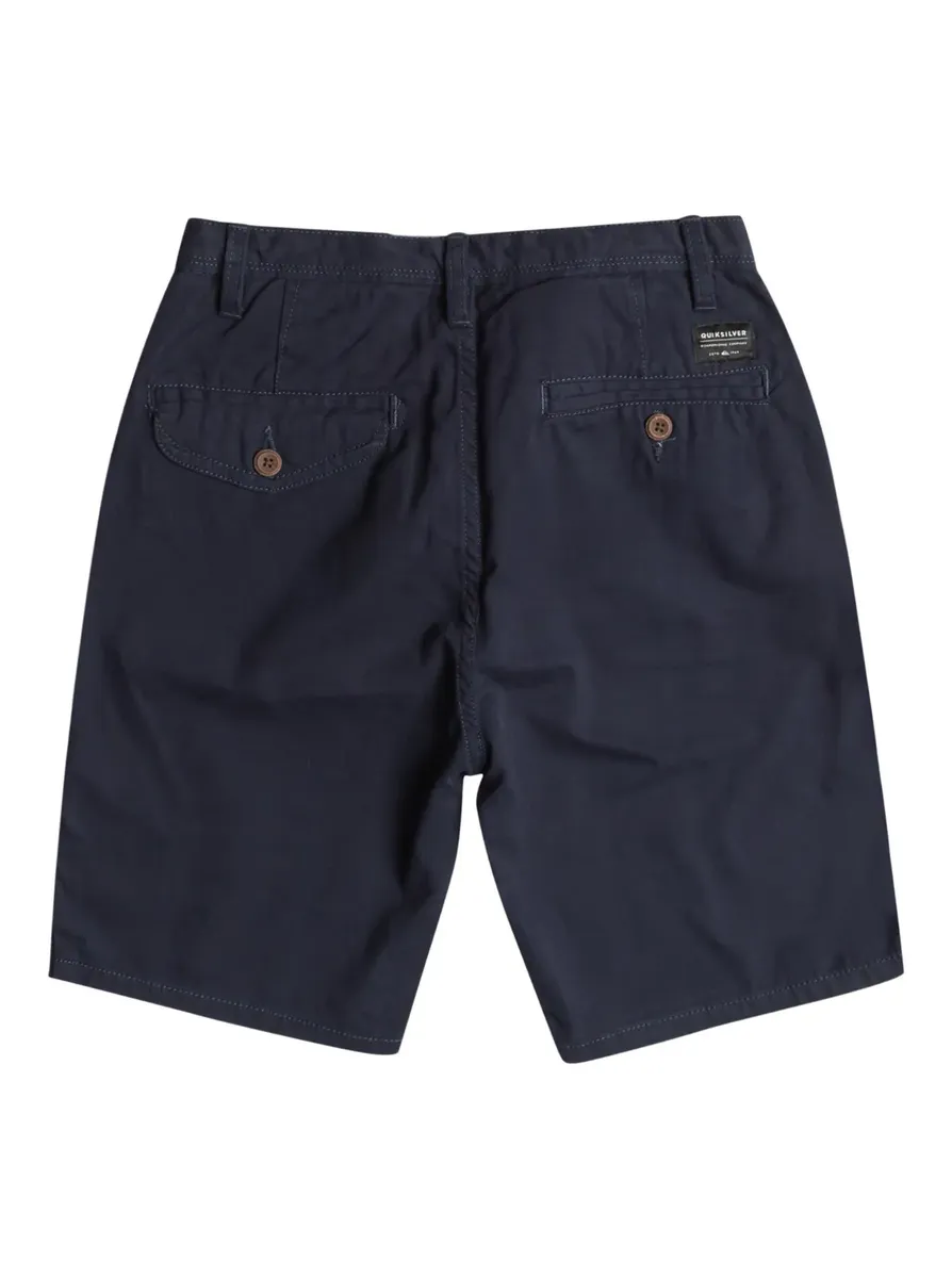 Шорты-чиносы для мальчиков 8-16 лет. Характеристики этого изделия: Ткань: хлопковая саржа [248 г/м2], Посадка: Прямой крой, Внешний шов: внешний шов 17 дюймов, Короткая длина, Талия/пояс: Фиксированный пояс на молнии, Регулируемый пояс только для размеров от 8 до 10. лет, Застежка: пуговица, Карманы: 1 карман сзади слева с клапаном, 1 прорезной карман сзади справа, Логотип: бирка Quiksilver внизу переднего левого кармана. На каждый день — шорты-чиносы для мальчиков 8–16 лет.