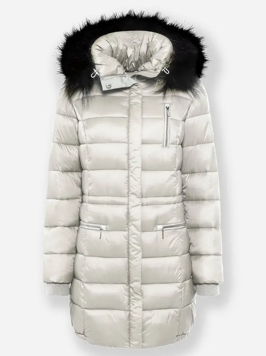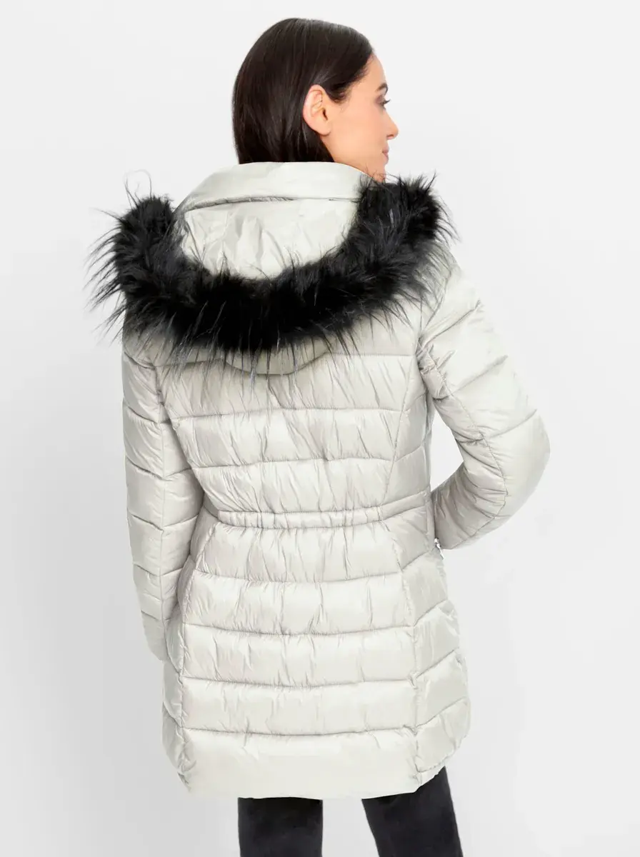 С искусственным мехом на съемном капюшоне.