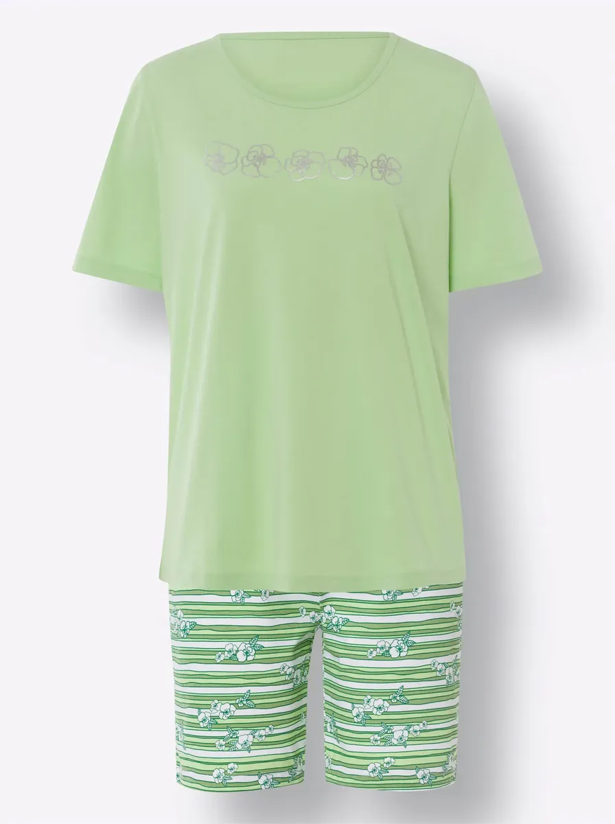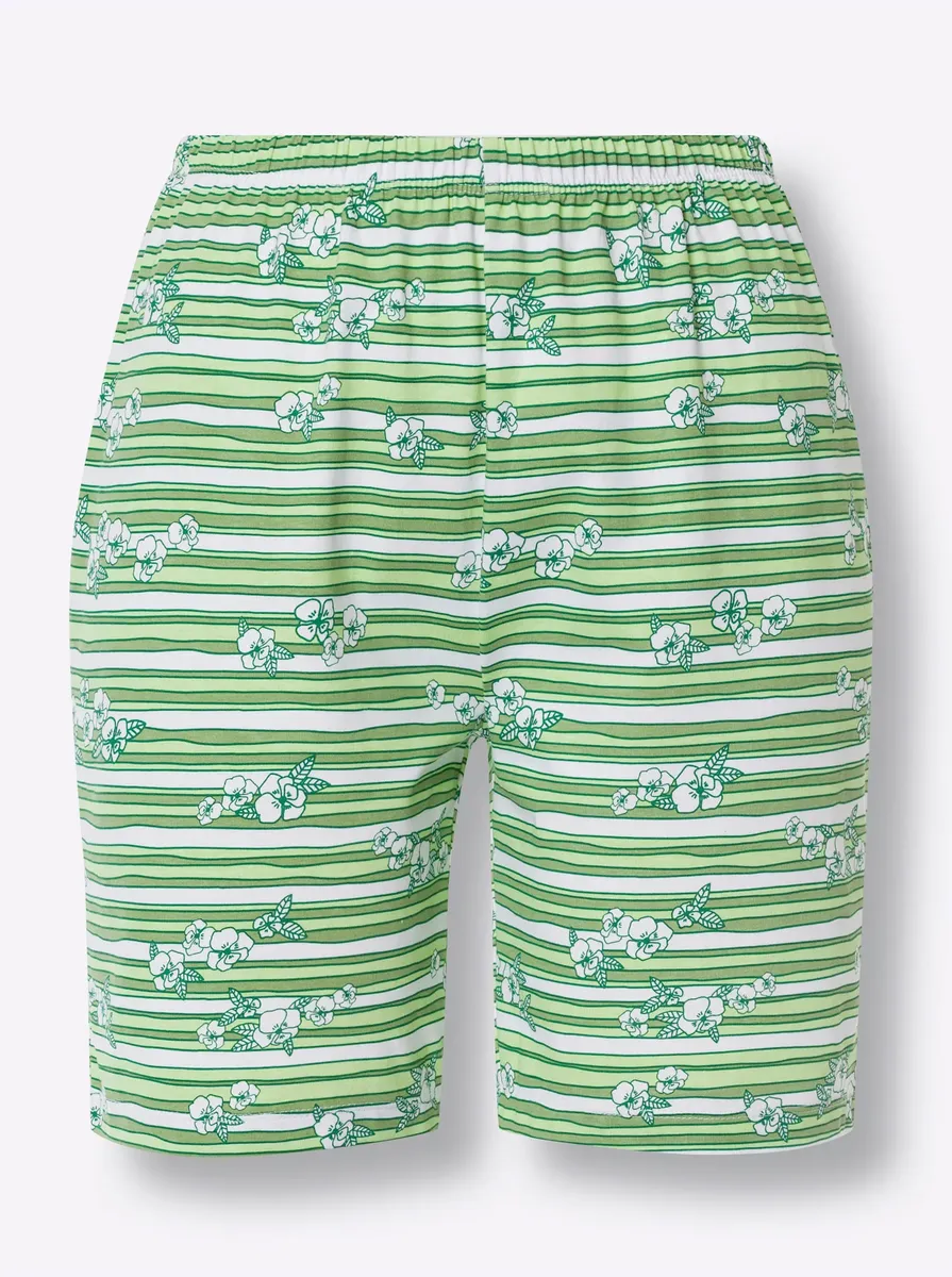 Партнер мечты для приятных ночей: Shorty в действительно приятном качестве. Выбирайте свою любимую из двух моделей: с рубашкой со сплошным принтом и однотонными брюками с зауженной талией или с принтом из фольги спереди и брюками с принтом. Одинарный трикотаж. 100% хлопок.