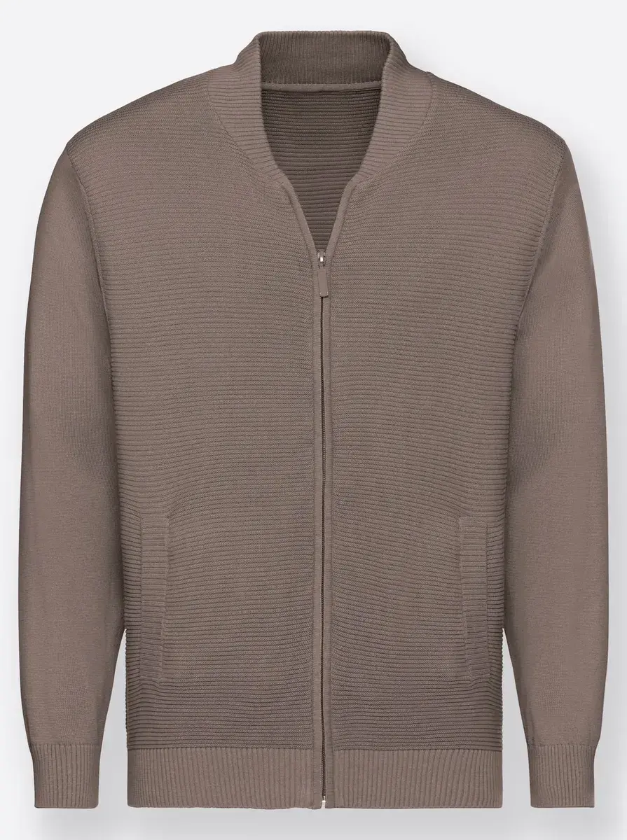 Партнер по комбинации и замена жакета: пестрый кардиган от Marco Donati с ребристой передней и задней частью. Воротник-стойка и молния. Интегрированные карманы. Ребристые манжеты на рукавах и по низу. Удобен в ношении, прост в уходе и долговечен. 100% хлопок. Машинная стирка.