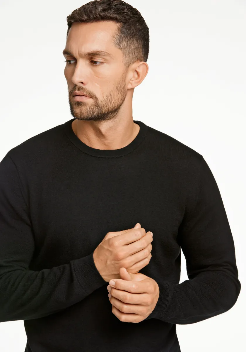 Эксклюзивный классический вязаный свитер Lindbergh Black с круглым вырезом. Свитер изготовлен из 1% мериносовой шерсти, что делает его особенно мягким и теплым, но при этом не слишком объемным. Шерсть обладает антибактериальными свойствами, а также регулирует температуру. Это означает, что свитер согреет вас в холодные дни и охладит в теплые дни. По низу свитера, а также на манжетах и ​​вырезе имеются ребристые края. Свитер подойдет как для офиса, так и для повседневной вечеринки, его можно легко носить отдельно или поверх рубашки. Состав материала: Верхняя ткань: 100% натуральная шерсть (Меринос). Состав: Верхняя ткань: 100% натуральная шерсть (Меринос).