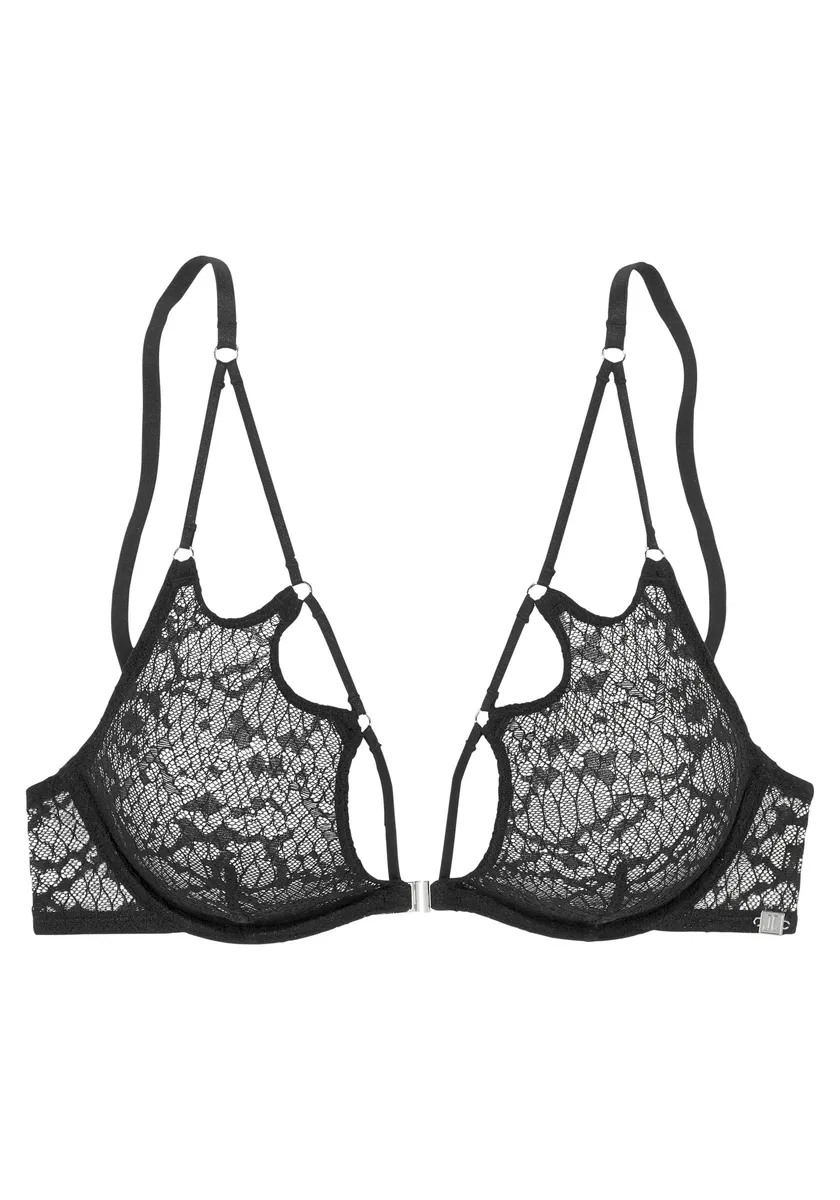 Экстравагантный бюстгальтер на косточках (без подкладки), созданный дизайнером Jette Joop. С соблазнительным видом ленты. С практичной застежкой спереди для легкого надевания и снятия. Бретели регулируются индивидуально. Доступны с соответствующими стрингами из той же серии. Внешний материал: 88% полиамид, 12% эластан.