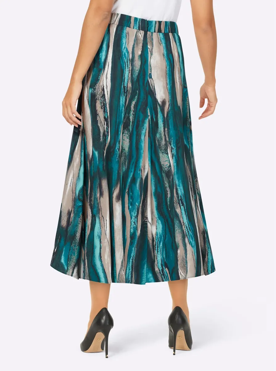Экстравагантный принт этой юбки привлечет всеобщее внимание. Модель с широкой вставкой, удобным эластичным поясом по всему периметру, внутренней пуговицей, молнией и боковым разрезом. Мягкая, струящаяся, чистая вискоза обеспечивает приятное ощущение на коже. Подол сзади длиннее, чем спереди. 100% вискоза. Машинная стирка.