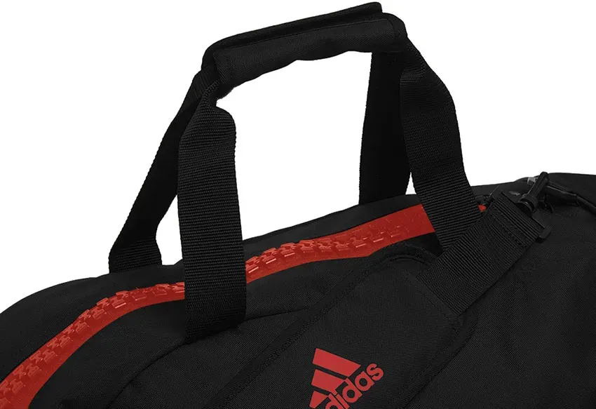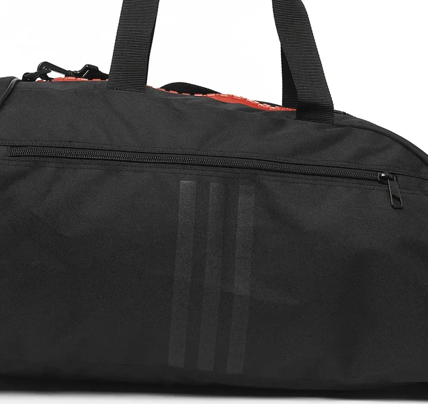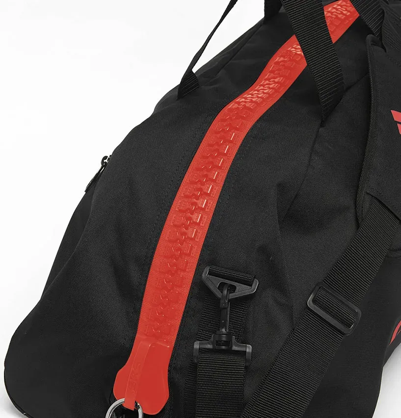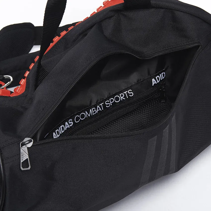 Сумка adidas 2in1 Bag Polyester COMBAT SPORTS — практичная спортивная сумка, которую можно использовать и как сумку, и как рюкзак. Она изготовлена ​​из прочного полиэстера и украшена новым логотипом Adidas Performance, напечатанным на внешней стороне сумки. Сумка 2 в 1 доступна в различных цветах и ​​размерах и была специально разработана для занятий боевыми искусствами. Особенность в том, что его можно открыть боксерскими перчатками. Также имеются практичные внешние карманы.