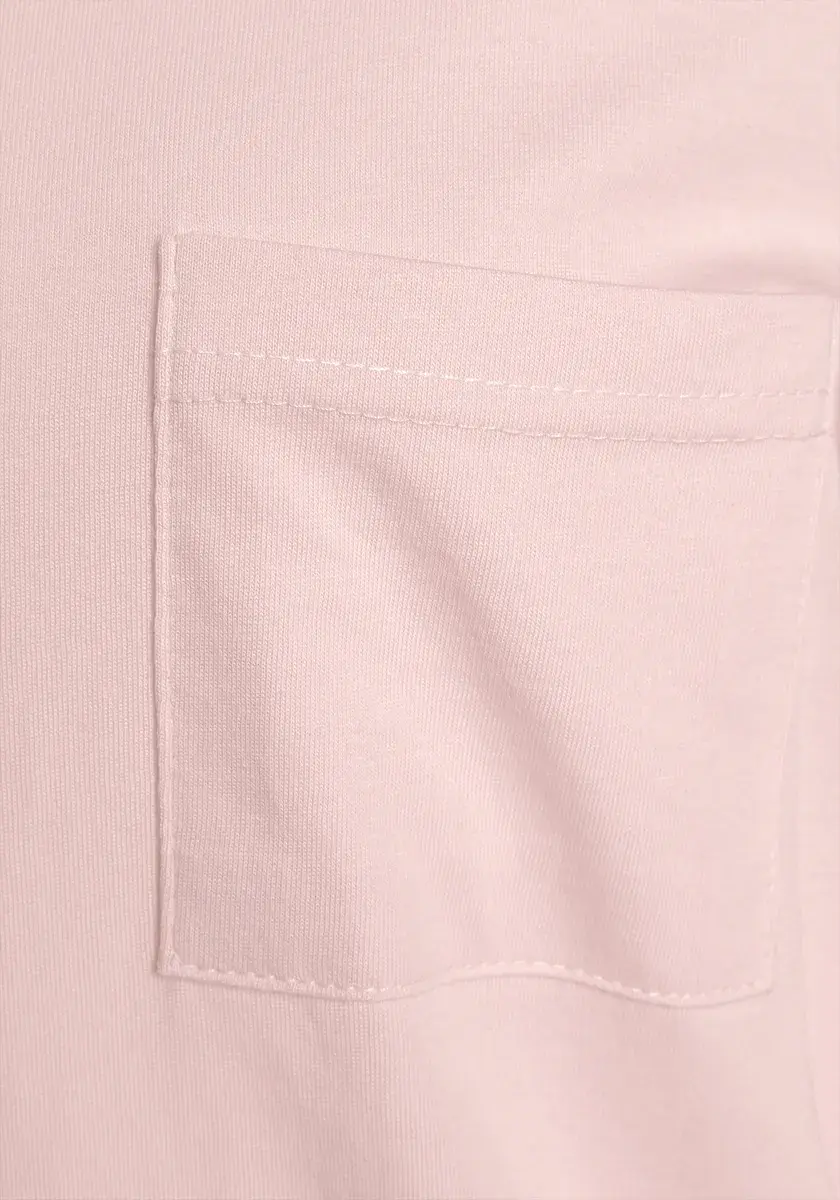 Рубашка с длинными рукавами, круглым вырезом и нагрудным карманом.