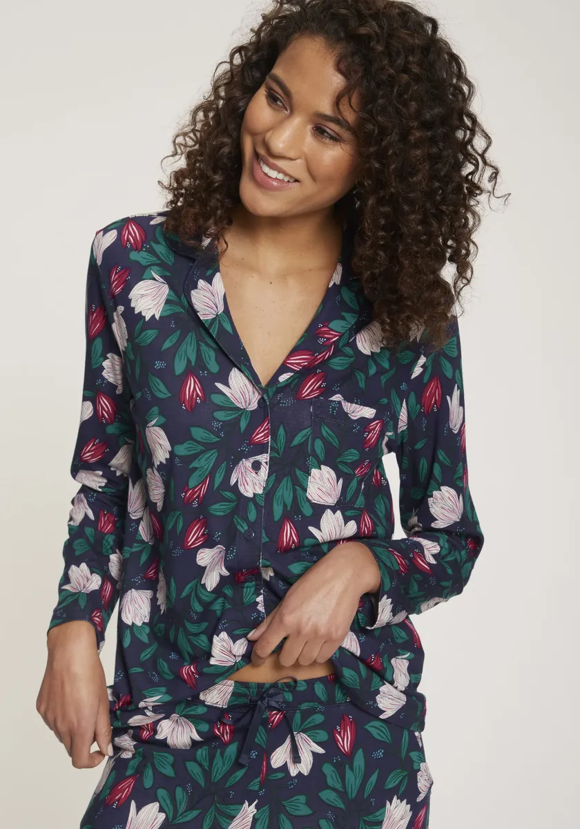 Пижама классического кроя от s.Oliver с принтом. Рубашка с длинными рукавами, воротником с лацканами, планкой на пуговицах и нагрудным карманом. Брюки с эластичным поясом на кулиске и боковыми карманами. Удобно носить одинарный трикотаж.