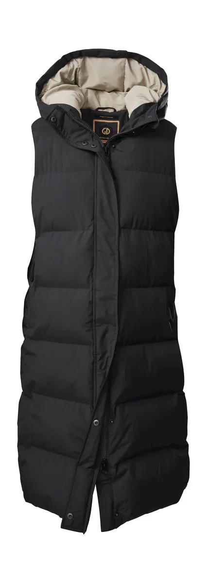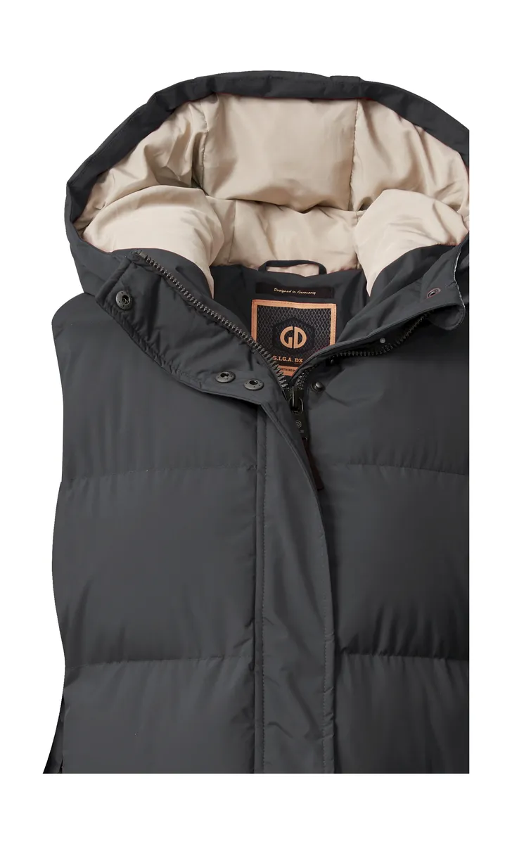 Модный функциональный жилет с пуховым эффектом от G.I.G.A. DX – идеальный спутник в холодное время года и просто необходим. Удлиненный крой, большой капюшон и потайная молния с клапаном придают модели повседневный вид. Стеганый жилет водоотталкивающий, ветронепроницаемый и дышащий одновременно. Двусторонняя молния открывается снизу и сверху, обеспечивая свободу движений, несмотря на длинный крой. Он также имеет практичную защиту подбородка, которая предотвращает защемление кожи. Два кармана закрываются на молнии. Для killtec особенно важно сделать коллекции более устойчивыми и ориентированными на будущее. killtec все больше полагается на более ответственные производственные процессы. Поэтому этот жилет пропитан веществами, не содержащими фтора.