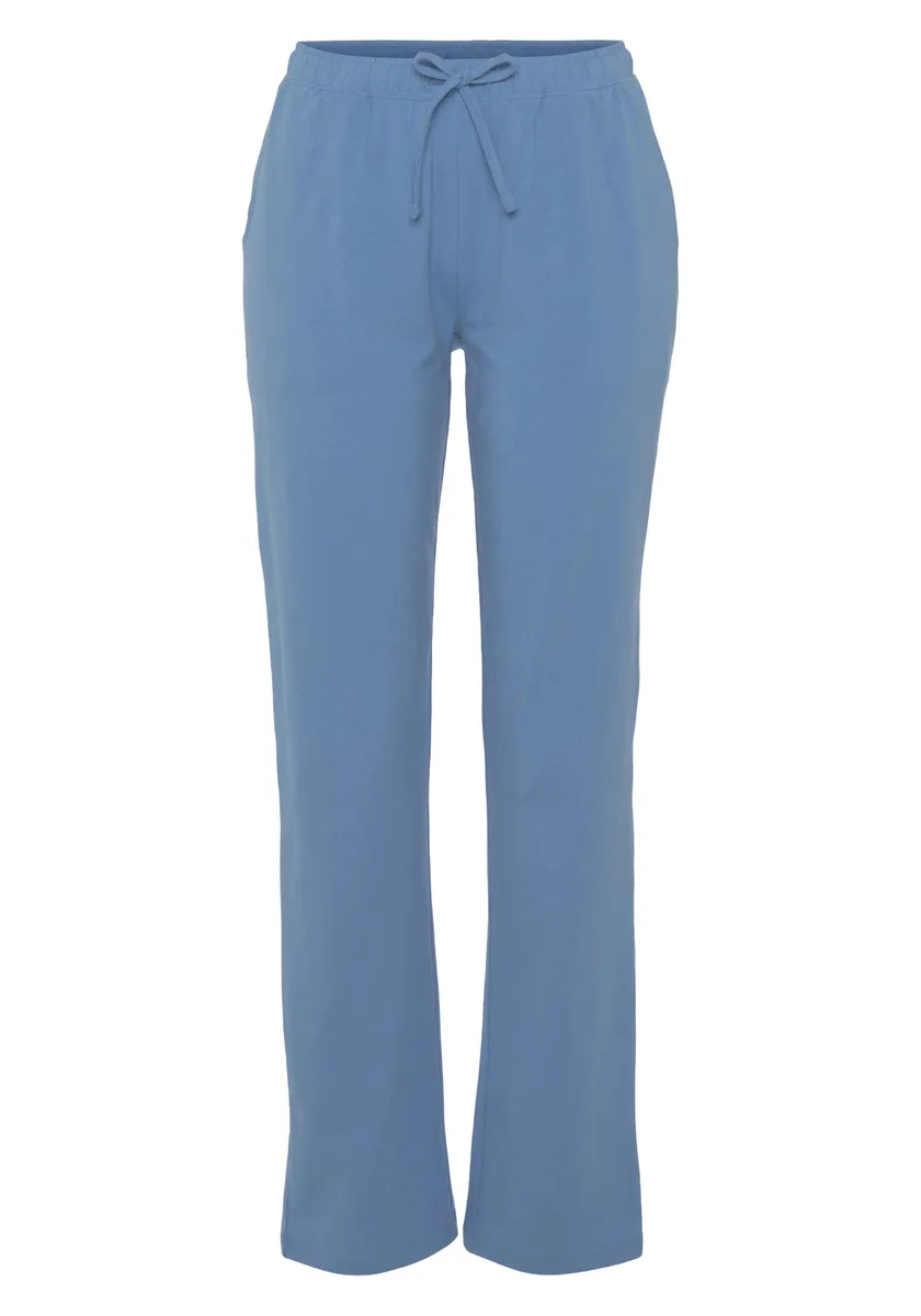 Длинные брюки с эластичным поясом на кулиске и боковыми карманами.