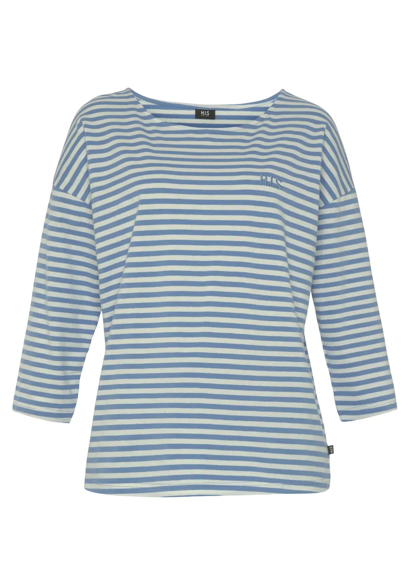 Рубашка со спущенными плечами, рукавами 3/4 и круглым вырезом.