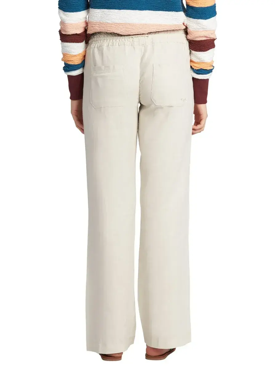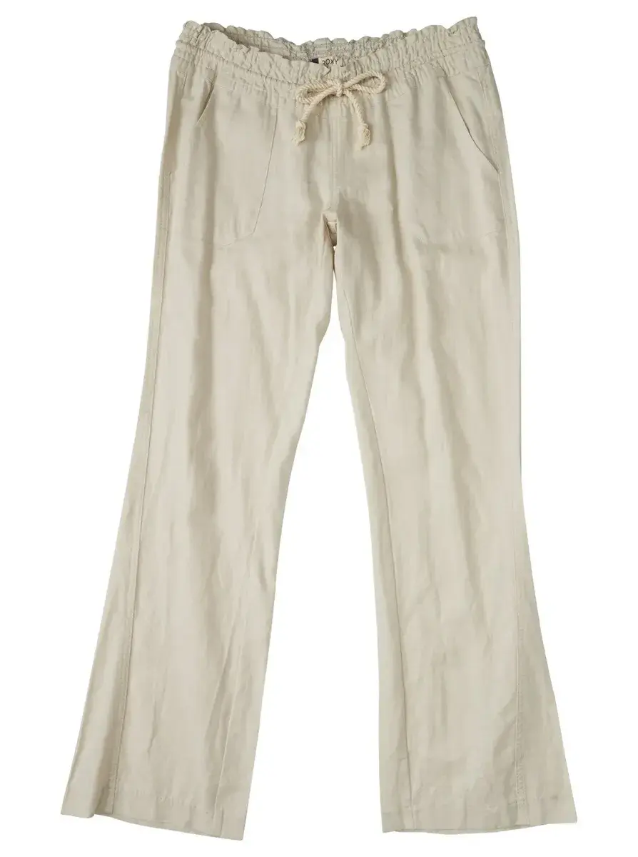 Расклешенные брюки женские. Особенности данного изделия: Ткань из смеси льна и вискозы [200 г/м2], удобный, слегка свободный крой, эластичный пояс и вышитый логотип ROXY на заднем кармане.Oceanside - брюки-клеш для женщин.