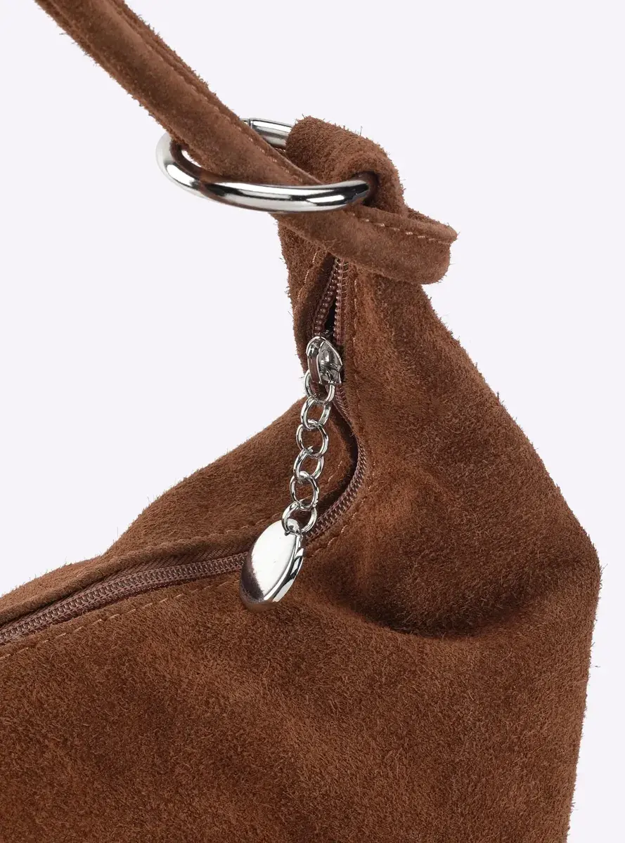 Сумка из тонкой яловой замши с модными ручками с запахом. Примерно 49x39x2 см.
