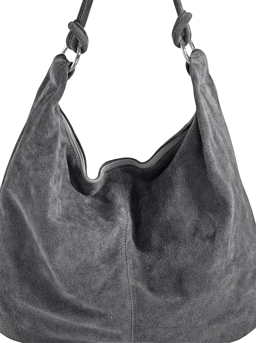 Сумка из тонкой яловой замши с модными ручками с запахом. Примерно 49x39x2 см.