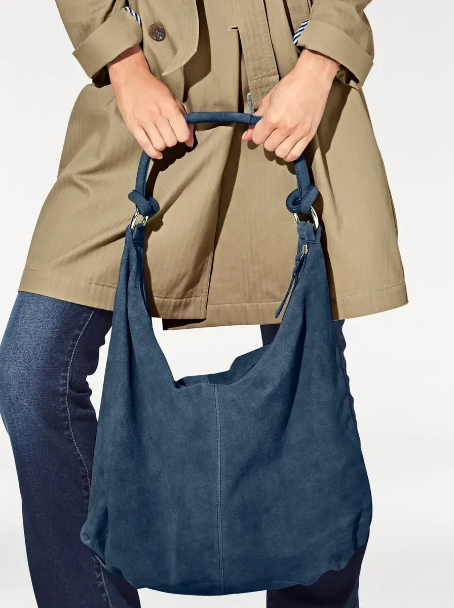 Сумка из тонкой яловой замши с модными ручками с запахом. Примерно 49x39x2 см.