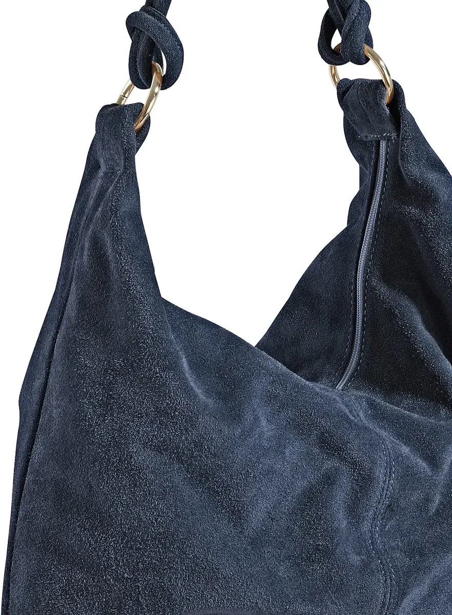 Сумка из тонкой яловой замши с модными ручками с запахом. Примерно 49x39x2 см.