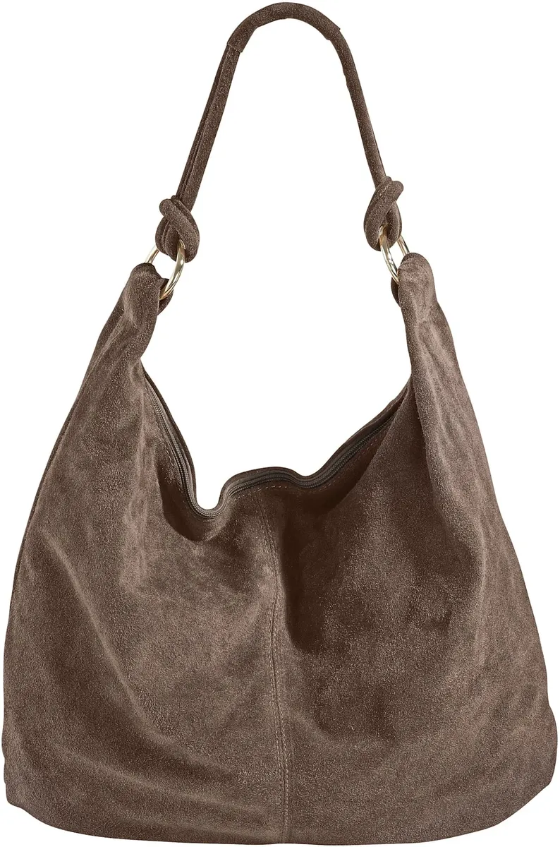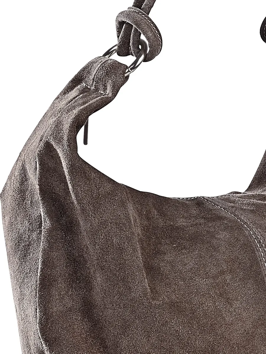 Сумка из тонкой яловой замши с модными ручками с запахом. Примерно 49x39x2 см.