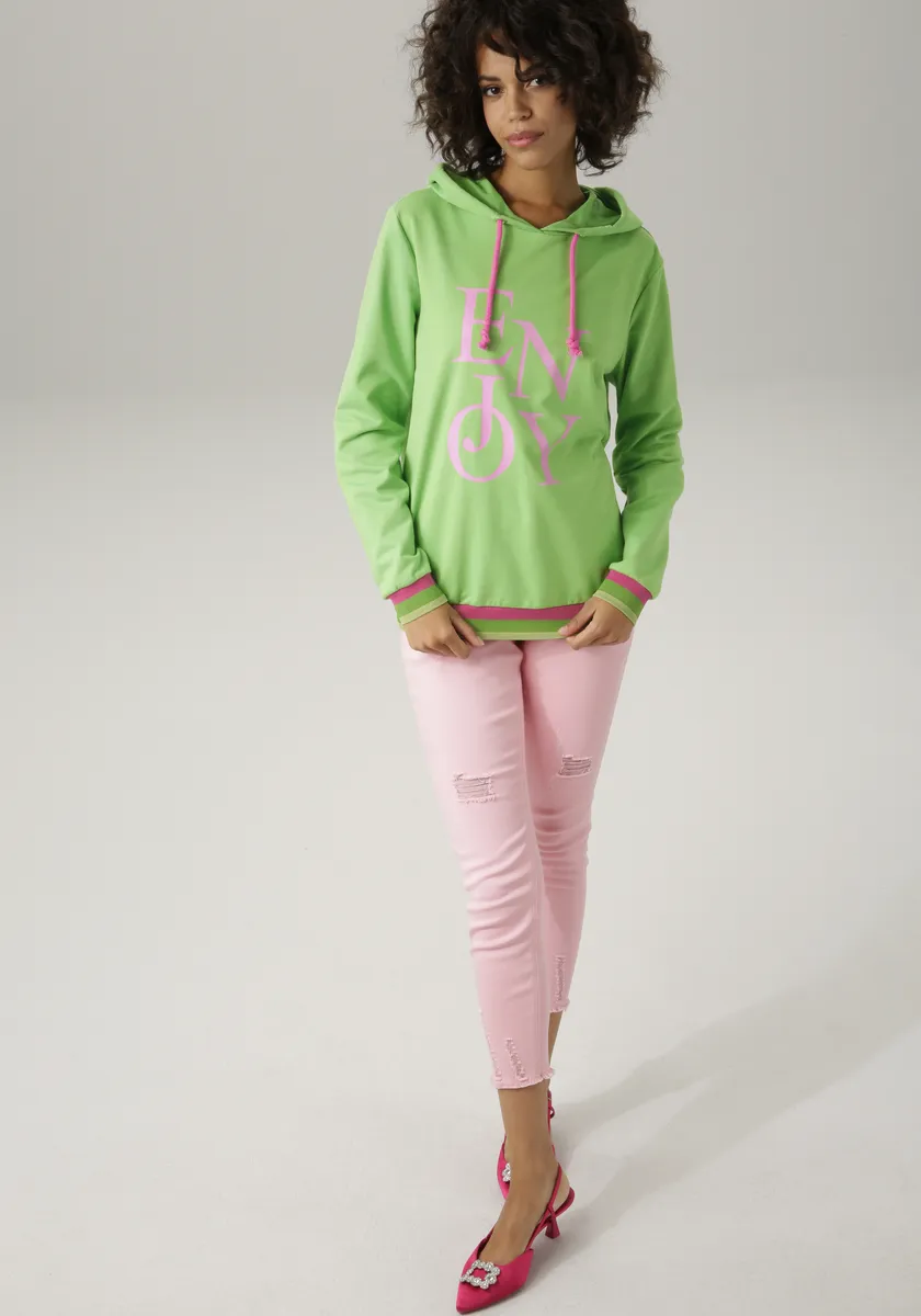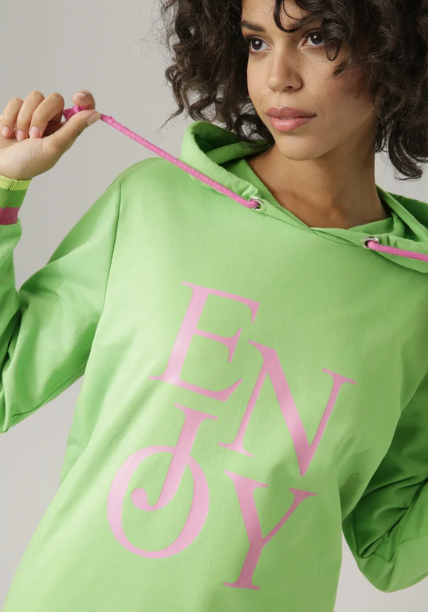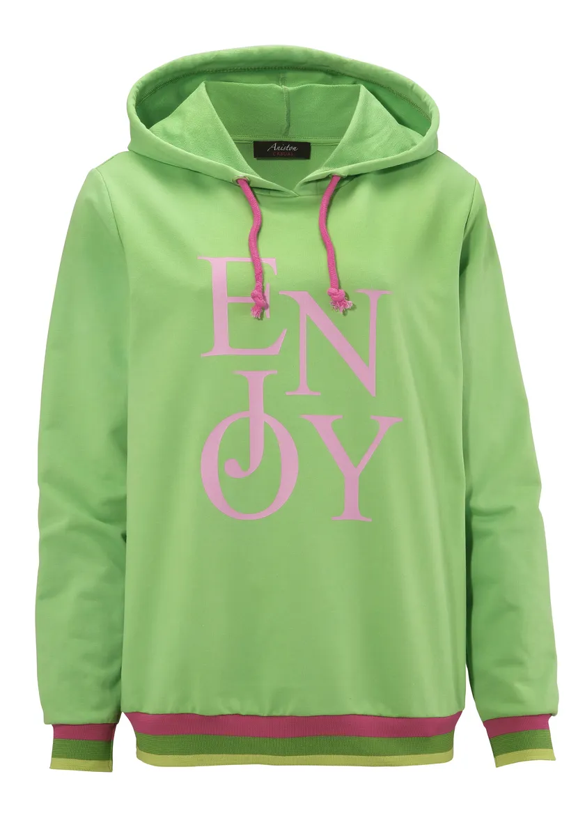 Толстовка Aniston CASUAL с надписью ENJOY, зеленый