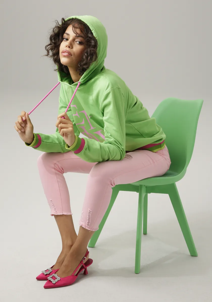 Расслабьтесь и наслаждайтесь — свитшот от Aniston CASUAL. С надписью «НАСЛАЖДАЙТЕСЬ». Капюшон регулируется ремешком. Полосатые манжеты по подолу и длинные рукава. Эффектная рубашка повседневного кроя. Длина по размеру 36 примерно 64 см. Поддержите хлопок, произведенный в Африке. Машинная стирка.