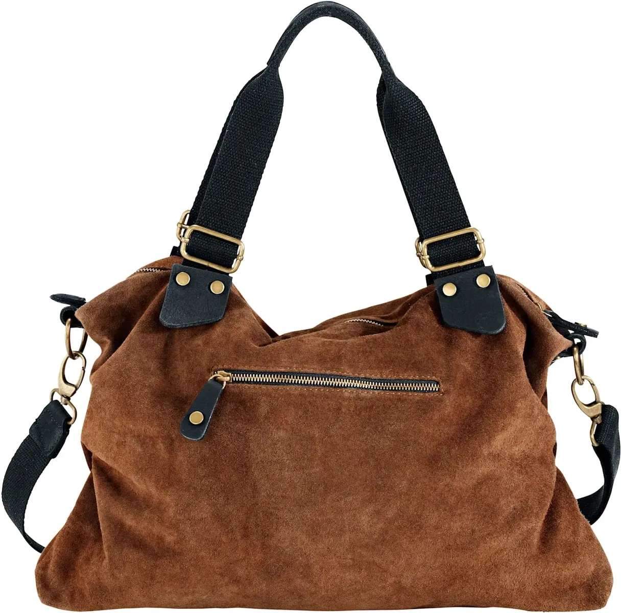 Сумка С декоративной бахромой и двухцветным дизайном. Изготовлен из высококачественной коровьей замши. С ручками из холщового материала. Со съемным ремнем для переноски. Примерно 36/46/7 см.