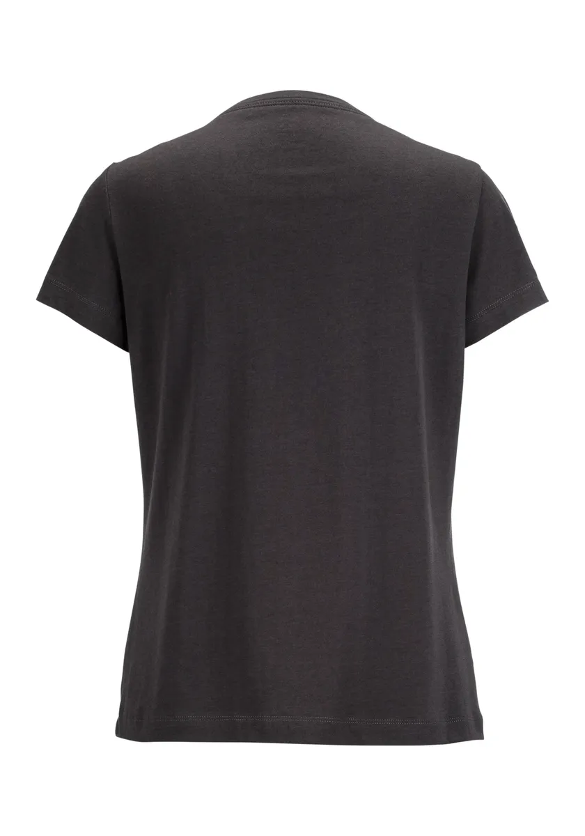 Рубашка с короткими рукавами, круглым вырезом и принтом спереди.