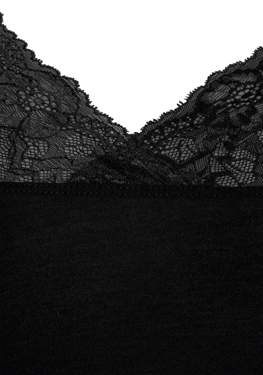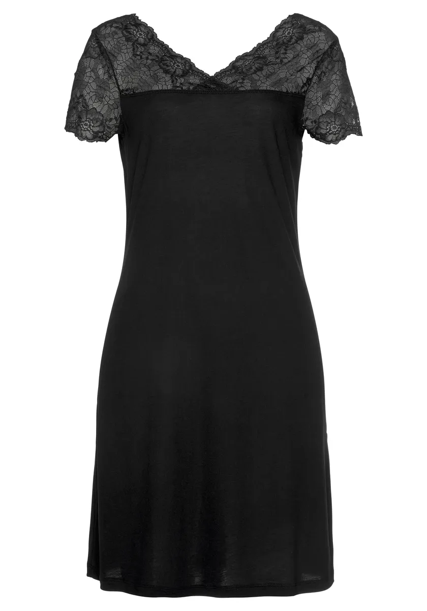 Ночная рубашка LASCANA, с кружевной вставкой, черный