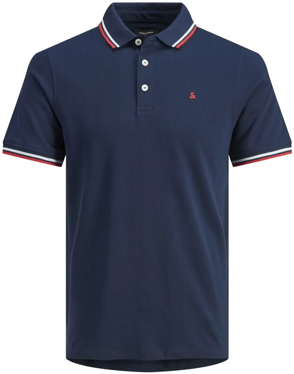Элегантная рубашка-поло от Jack & Jones с контрастными элементами на воротнике и короткими рукавами. Низ с разрезами по бокам. Небольшая вышивка на груди. Тонкая посадка. Для повседневного или офисного образа. Легкий и удобный трикотаж высокого качества.