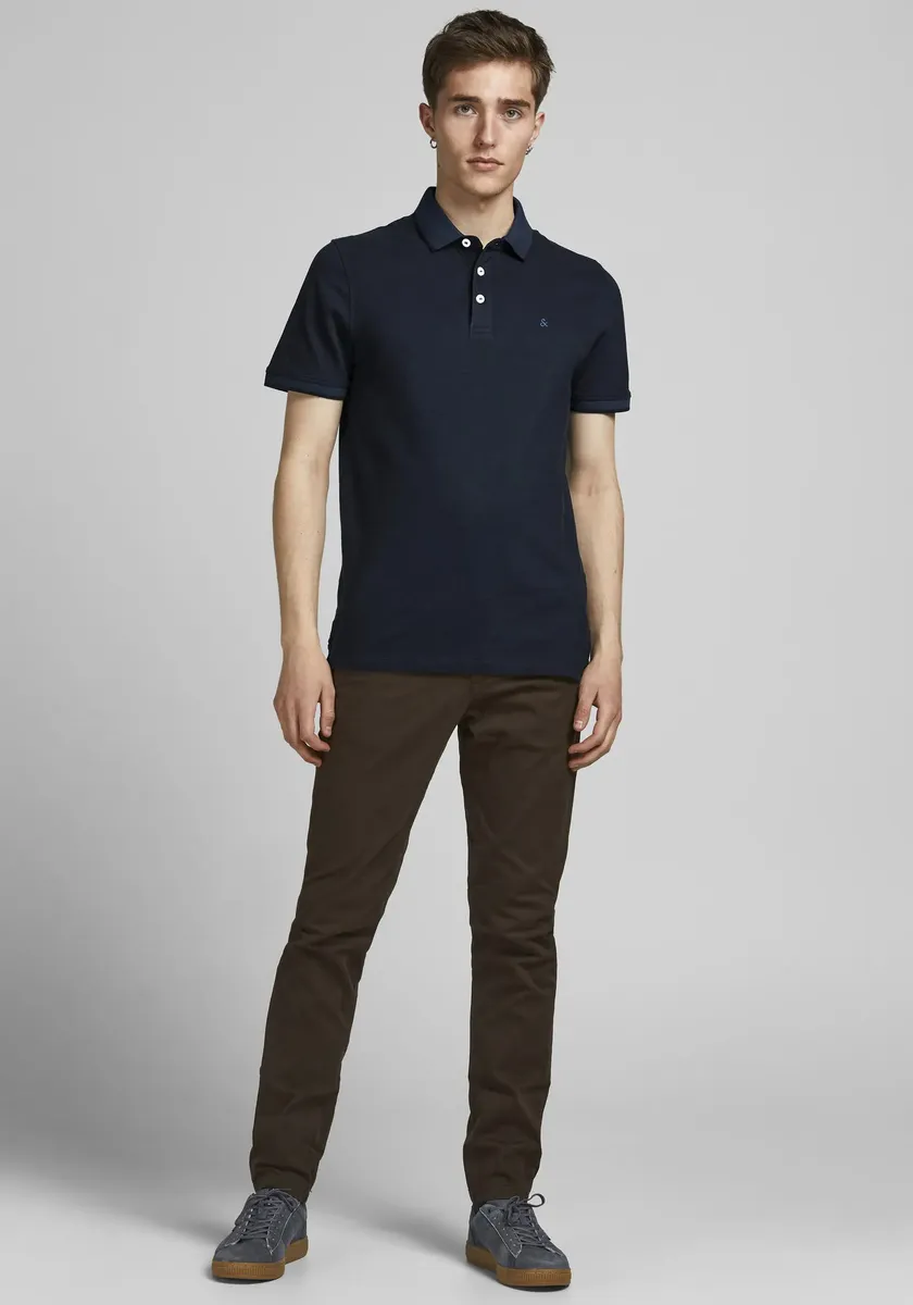 Элегантная рубашка-поло от Jack & Jones с контрастными элементами на воротнике и короткими рукавами. Низ с разрезами по бокам. Небольшая вышивка на груди. Тонкая посадка. Для повседневного или офисного образа. Легкий и удобный трикотаж высокого качества.