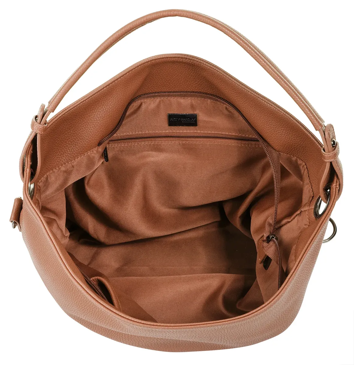 Сумка через плечо Betty Barclay поможет сэкономить место! В просторную сумку через плечо поместятся покупки, завоевания из последнего похода по магазинам и небольшая бутылка с водой. Поместите свой смартфон, ключи и кошелек в отделения, которые есть в основном отделении. Для большего комфорта и разнообразия при переноске вы можете использовать регулируемый плечевой ремень или ручку сумки.* 1 основное отделение на молнии* 1 внутренний карман* 1 внутренний карман на молнии* 1 внутреннее отделение для смартфона (до 6 дюймов)* 1 Ручка для переноски* 1 плавно регулируемый съемный плечевой ремень (65–125 см)* тонкий логотип спереди* особенно легкое отделение для смартфона: 15,2 см (6 дюймов) выходной размер: один размер нижние детали: усиленная ширина: 41 см A4 Папка: да (ширина максимум 7 см) Размер: один размер Вес: 500 Основная застежка: МолнияВнутренний вид: соответствующий цвет Плечевой ремень: да (съемный, регулируемый)Объем: 20Высота: 34 смГлубина: 16 смПлечевой ремень (длина в см): 65 см - 125 смФормат: альбомныйНаружный материал: полиэстер (100%)Ручка для переноски: простая ручка (фиксированная)Внешний вид: Однотонный - шелковистый блескВнутренний материал: смешанный материал Подходит для ручной клади: даВес: 0,5 кгКоличество основных отделений: 1Закрытие основных отделений: молнияЗаднее отделение: нет