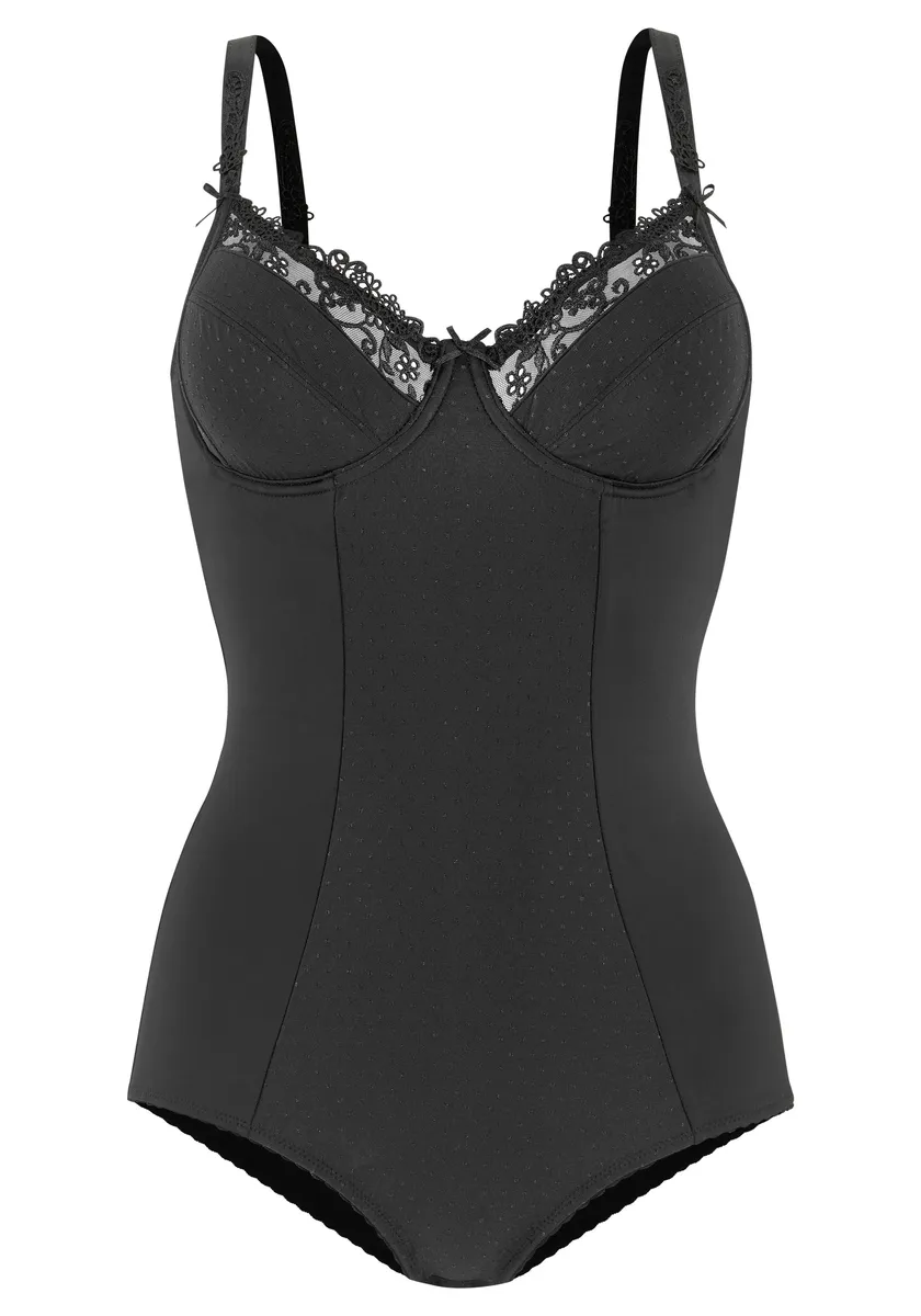 Боди Nuance, на косточках и кружевной вышивке, нижнее белье, черный