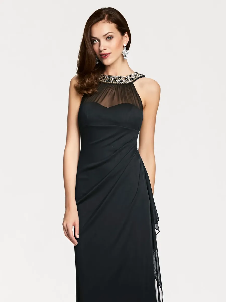 Элегантное вечернее платье с модной отделкой. Облегающая фигуру форма. Для коктейлей и торжественных случаев. Модные рюши сзади. Длина около 146 см. 100% полиэстер. Подкладка: 100% полиэстер. Машинная стирка.