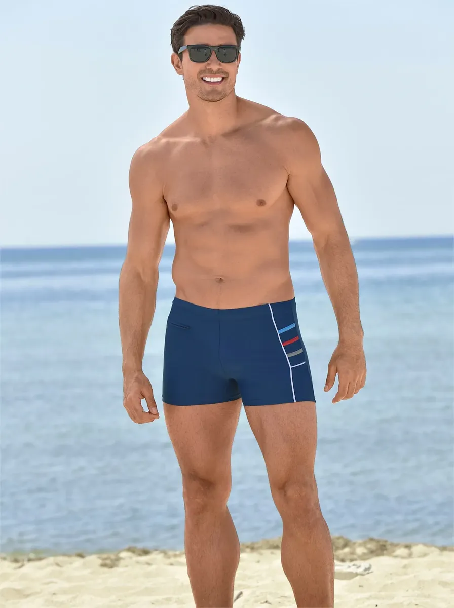 Плавки в форме брюк со спортивными полосками по бокам. Шнурок на поясе. Мешочек на молнии. 80% полиамид, 20% эластан. Подкладка брюк спереди: 100% полиамид.