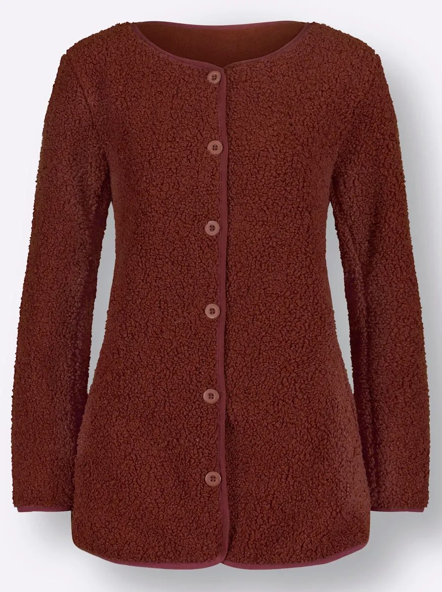Рекомендуем на всякий случай: флис! Эта флисовая куртка Тедди полностью изготовлена ​​из пушистой, мягкой и приятной на ощупь ткани, поэтому она приятно легкая и в то же время удивительно теплая. Планка на пуговицах во всю длину, 2 кармана. 100% полиэстер. Машинная стирка.