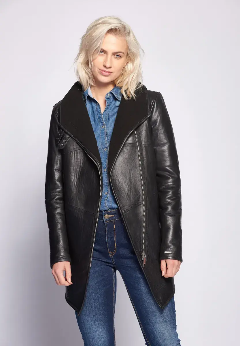 Элегантное полупальто от модного бренда MAZE. Пальто застегивается на асимметричную молнию и имеет красивый рубашечный воротник с двумя пряжками. Два боковых кармана со скрытыми кнопками и красивыми декоративными швами. Слегка скроенный крой с особенно мягкой внутренней подкладкой обеспечивает удобную посадку. Случай: вечерняя/вечерняя одеждаБазовая модель: НетОтбеливание: Не отбеливатьГлажение: Не гладитьСостав материала: Верхний материал: 100% кожа ягненка / Подкладка: 100% полиэстерПодкладка: легкая подкладкаРазмер ассортимент: размеры СШАКоллекция: Осень/Зима 19Воротник/вырез: воротник рубашки Стиль пальто: короткое пальтоМатериал: КожаМатериал подкладки: ПолиэстерМатериал внешней ткани: КожаМатериал подкладки рукавов: ПолиэстерСвойства материала: КожаПосадка: Нормальная посадкаТип/стиль изделия: ПальтоДлина спины: около 51 см для размера. SCкрой: ПриталенныйСпециальные размерыУровень продукта: не указанСтиль: курткаТип застежки: молнияДлина рукава: длинный рукав