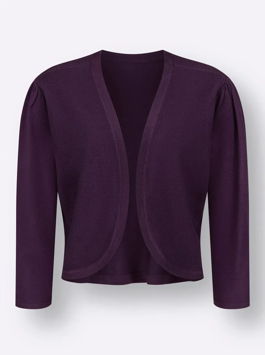Элегантное сочетание вышеперечисленного: болеро ультрасовременной короткой и открытой формы. Закругленный край спереди. Аккуратно связано по форме, подходящей по размеру. Рукава-буфы длиной 3/4. Вискоза качества ECOVERO от Lenzing. 80% вискоза (ECOVERO), 20% полиамид. Машинная стирка.