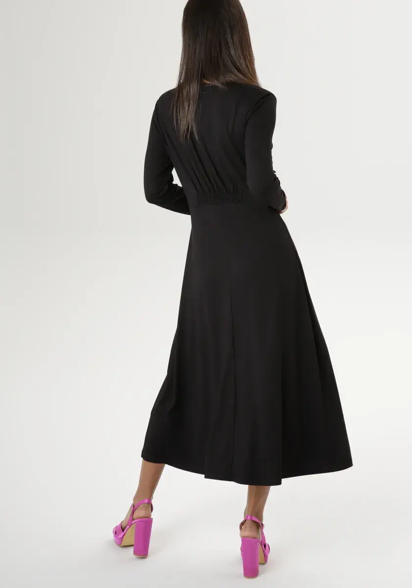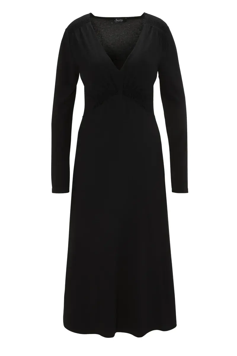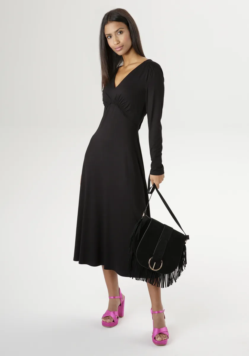Платье миди Aniston SELECTED с драпированным швом под грудью, черный
