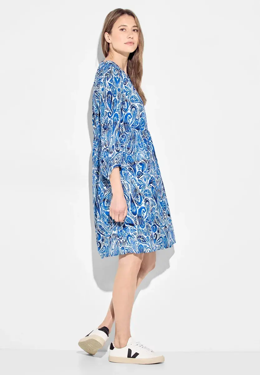 Платье CECIL с принтом, летнее платье длиной до колена, рукава 3/4 с манжетами, круглый вырез с разрезом и планкой на пуговицах, узор пейсли, чистый хлопок. Платье от CECIL – летний предмет гардероба для женщин силуэта длиной до колена. Рукава 3/4 с манжетами, круглый вырез горловины и элегантная планка на пуговицах создают повседневный, но стильный образ. Узор пейсли придает летнему платью игривый вид, а чистый хлопок обеспечивает удобство в ношении. Летнее платье длиной до колена, рукава 3/4 с манжетами. Круглый вырез горловины с планкой на пуговицах. Узор Пейсли. Чистый хлопок. Размеры для европейского размера M примерно: Длина 100 см, обхват груди 111 см, ширина низа 168 см. Материал: 100% хлопокОсобенности: с узором пейсли. ВыкройкаСостав материала: 100% хлопокПримечание по размеру: Этот товар больше.Материал: 100% хлопок Инструкции по уходу Отбеливание: Не отбеливать Инструкции по уходу Гладить: Утюжить при умеренной температуре (2 точки) / Утюжить при умеренной температуре / Утюжить при умеренной температуре Инструкции по уходу Уход за тканями: Не чистить ( круг - крест) / Не подвергать химической чистке Инструкция по уходу Сушка: Не использовать машинную сушку Инструкция по уходу Стирка : Деликатный режим 30°Страна-производитель: INЦелевая группа: Женщины