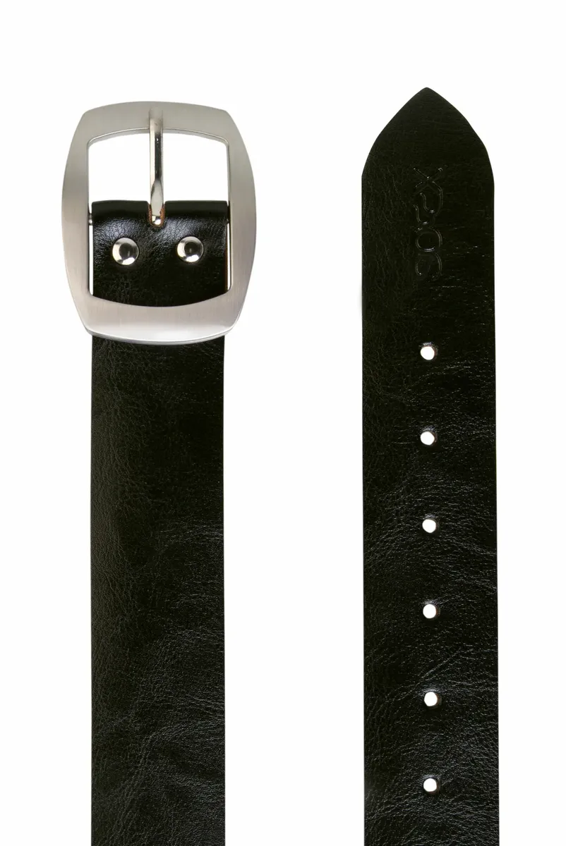 Ремень из пуристической кожи от SOCCX с мелкозернистой и гипоаллергенной пряжкой. На конусном конце ремня имеется тисненая этикетка. Ремень из мягкой яловой кожи удобен в ношении. Примечание. Указанная длина измерена от начала пряжки до третьего отверстия. Ширина ок. 4 см.