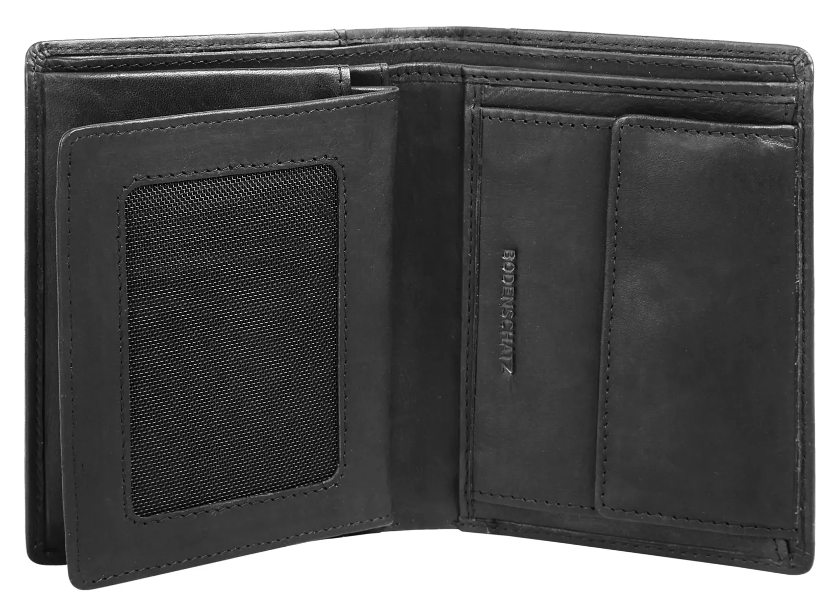 Элегантный кожаный кошелек портретного формата от Bodenschatz станет отличным, вневременным и незаменимым аксессуаром. Тонкий корпус и по-прежнему предлагает широкий выбор вариантов хранения. Изюминка: просто достаньте футляр для кредитной карты, если вы хотите носить с собой только самое необходимое. * классический, неподвластный времени кошелек * 1 отделение для монет на кнопке * 2 отделения для купюр * 7 отделений для карт * 4 кармана * 2 видимых кармана с сетчатой ​​вставкой * съемный футляр для кредитных карт Особенности: натуральная кожа Дополнение к названию: натуральная кожа Ширина: 13 см Вес : 100 Высота: 10 см Глубина: 2,5 см Количество внешних карманов: 1Количество внутренних карманов: 4Количество отделений для карточек: 7Количество отделений для купюр: 2Количество видимых отделений: 2Внешний материал: 100% коровья кожаРазмер: onesizeОсновная застежка: Без застежкиЦвет салона: черныйВнутренняя часть материал: КожаВес: 100 гОтделение для монет: есть (кнопка)Вид Поверхность: обработанная, полуматовая Объем: 0,1Формат: Портретный формат