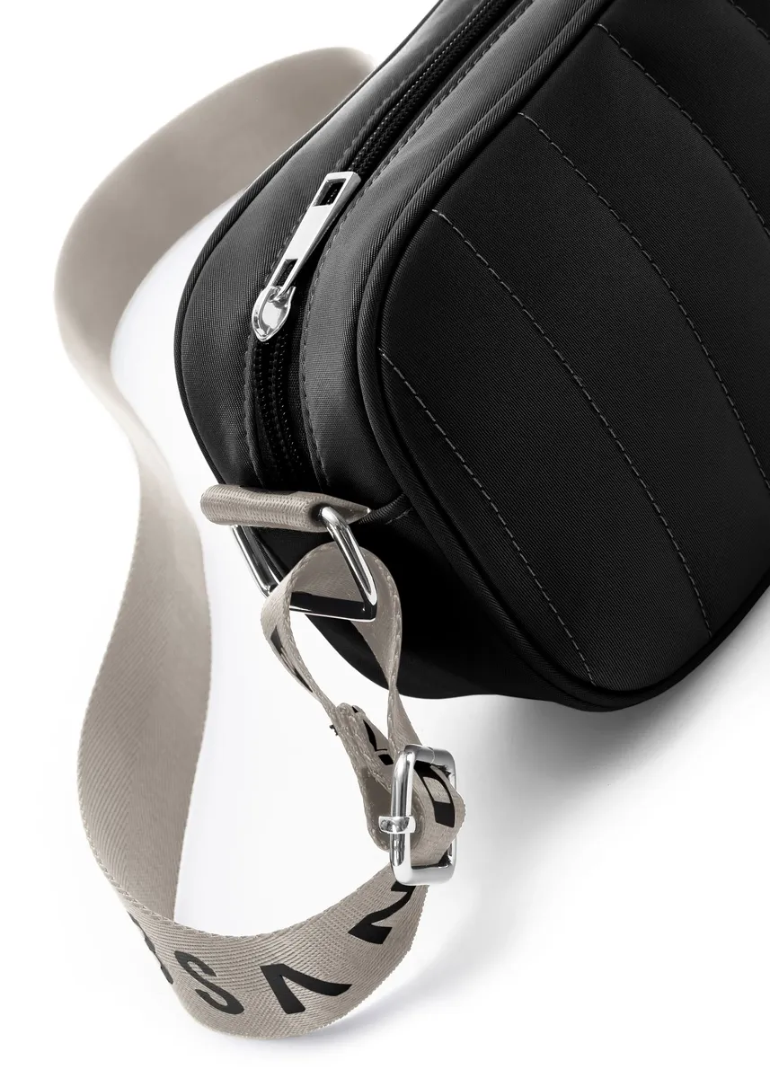Мини-сумка с модной стежкой и логотипом на плечевом ремне. С регулируемым плечевым ремнем и небольшим внутренним карманом. Веганский – без ингредиентов животного происхождения Эта мини-сумка украсит любой наряд — будь то джинсы или платья и юбки. Предлагает место для хранения вашего мобильного телефона и кошелька — идеально подходит для отпуска или прогулки по городу.