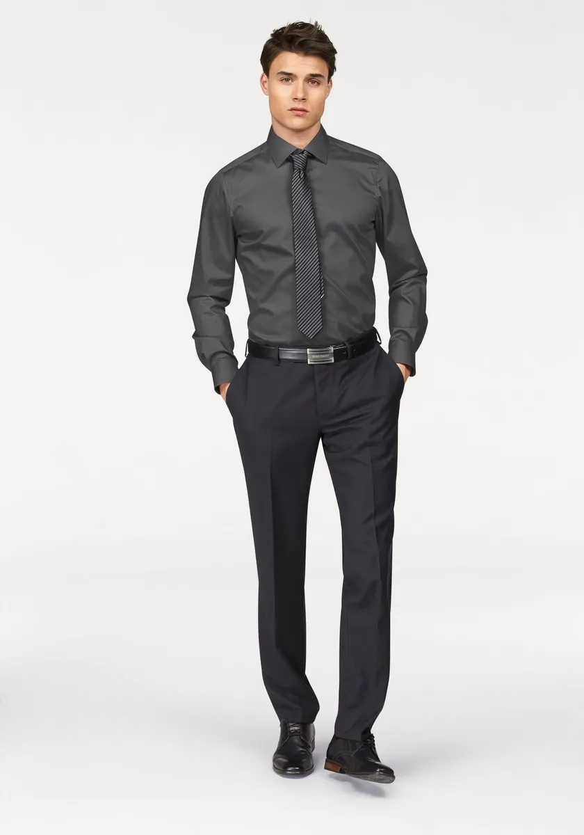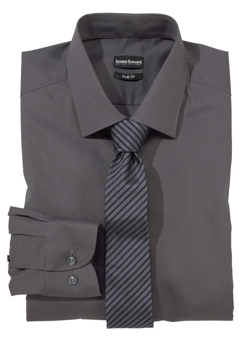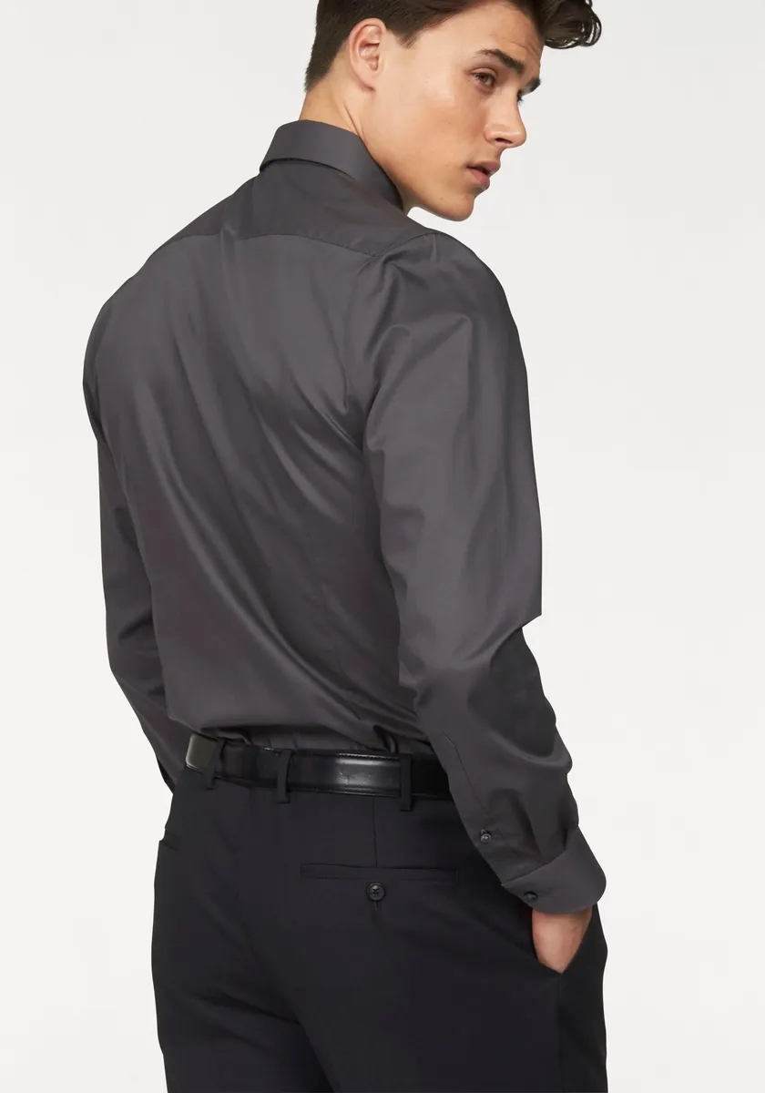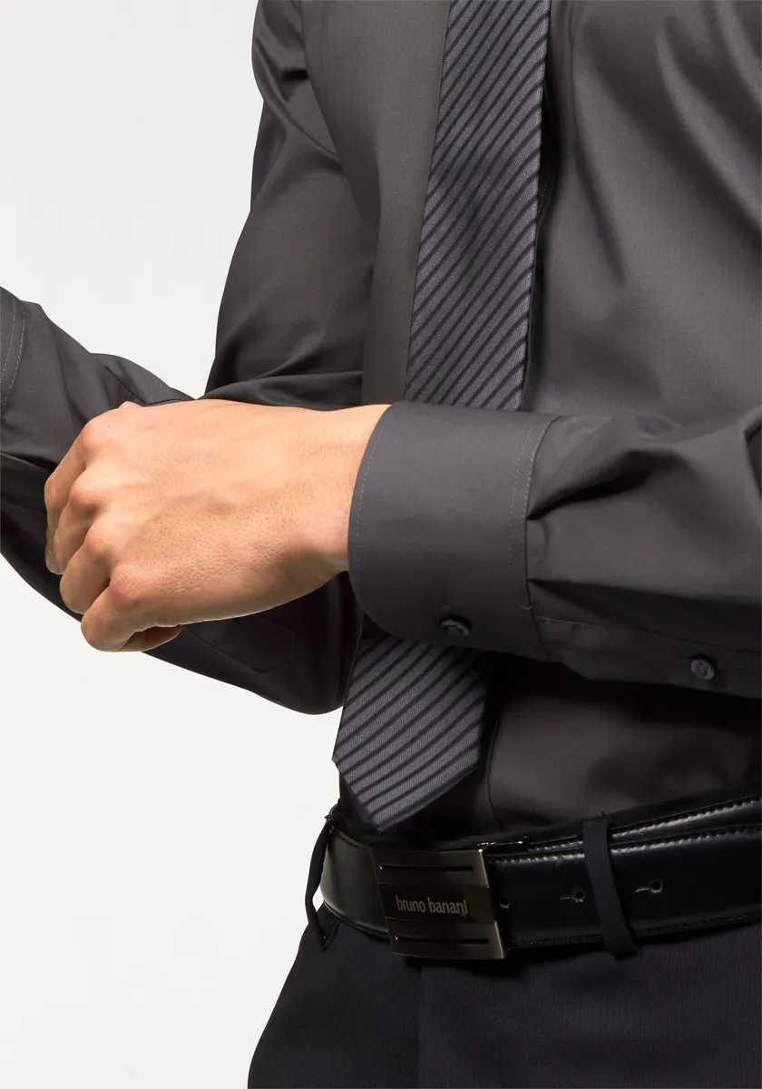 Рубашка Bruno Banani с длинными рукавами "Slim-fit", сохраняет форму благодаря содержанию эластана, антрацит