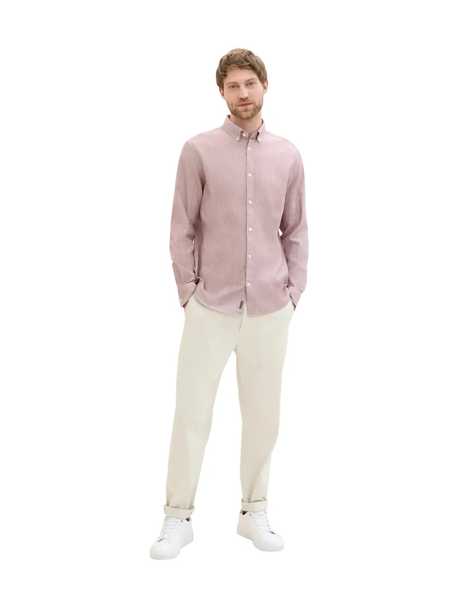 TOM TAILOR рубашка с длинными рукавами, со структурой, бордовый