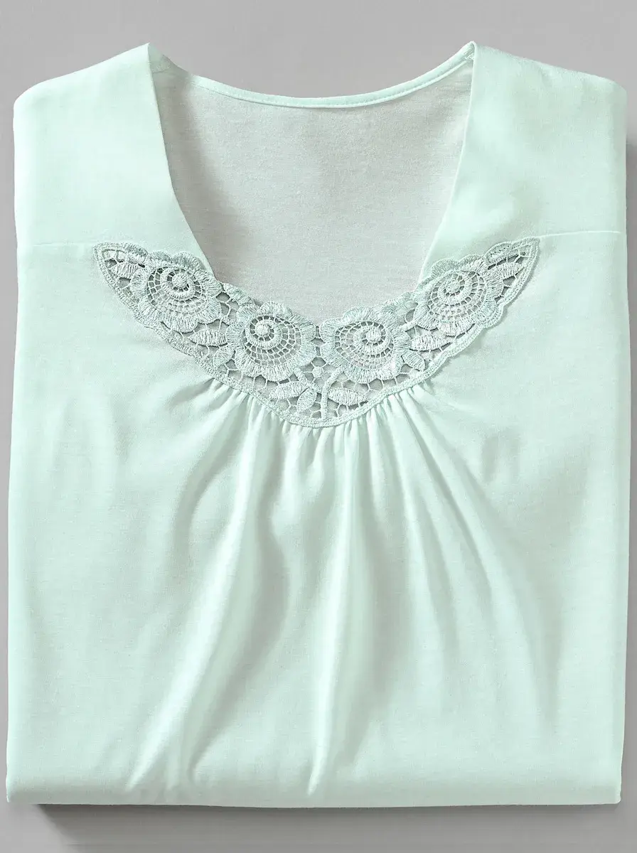 Романтика в двойной упаковке! Ночные сорочки с характерной кружевной вставкой на вырезе. Одинарный трикотаж. Длина около 115 см. 100% хлопок.