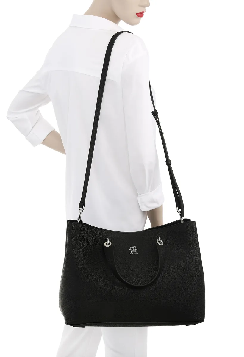 Сумка Tommy Hilfiger с ручкой "TH EMBLEM SATCHEL", с эмблемой TH спереди, черный