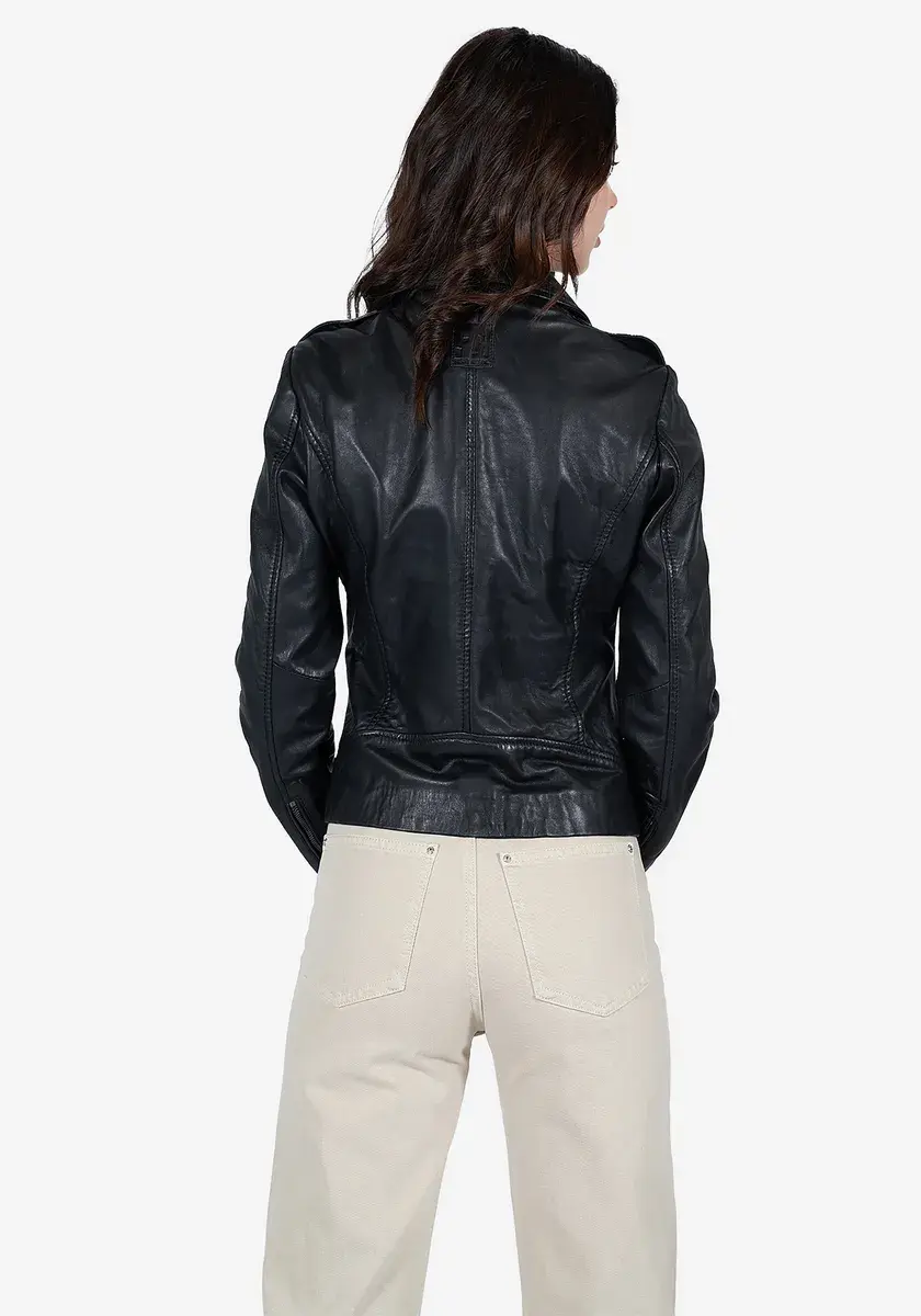 Стильная куртка из натуральной кожи в байкерском стиле.
