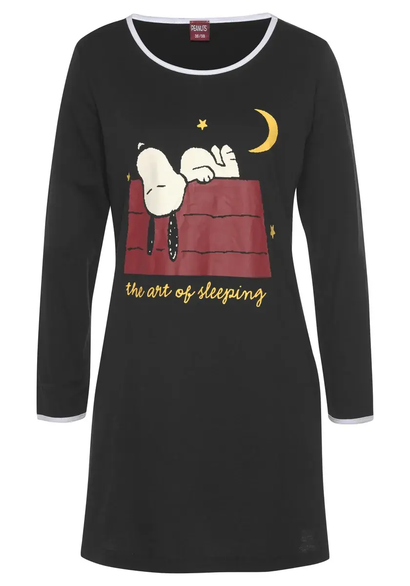 Ночная рубашка Peanuts с принтом Snoopy, черный