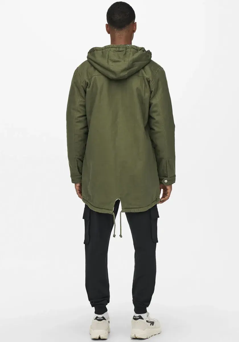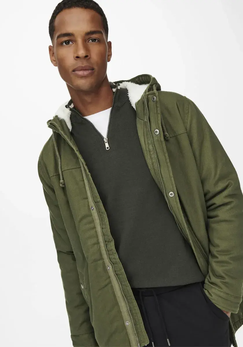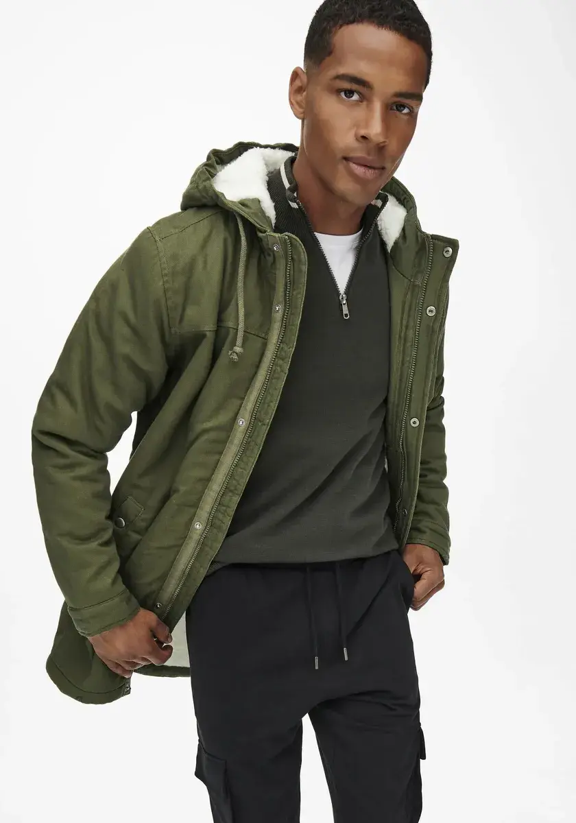 Парка ONLY & SONS "ALEX TEDDY PARKA", с капюшоном, оливковый