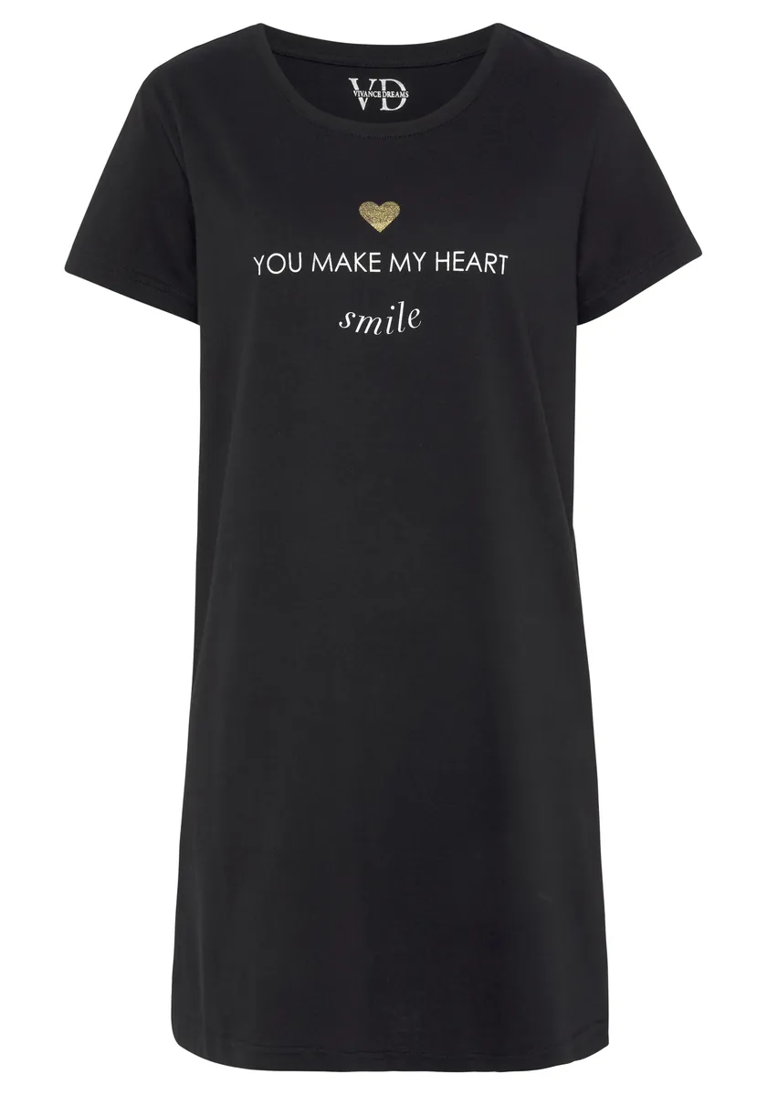 Ночная рубашка Vivance Dreams с принтом из фольги, черный