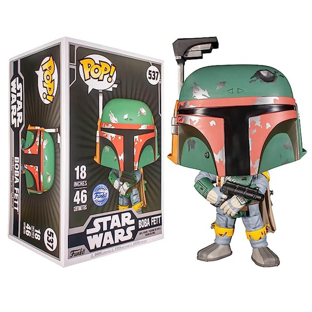 Коллекционная фигурка Бобы Фетта из франшизы "Звездные войны". Боба Фетт — второстепенный персонаж фантастической киносаги «Звёздные войны», охотник за головами, который по непонятным причинам приобрёл «межгалактическую» популярность среди поклонников сериала. Джордж Лукас придумал этого персонажа для второго фильма классической трилогии «Звёздных войн», в которой Боба Фетт находится на экране в течение лишь восьми минут и произносит только пять реплик, самая длинная и запоминающаяся из которых — «Мёртвым он мне не нужен». Виниловая фигурка имеет высоту примерно 46 см и поставляется в коробке.