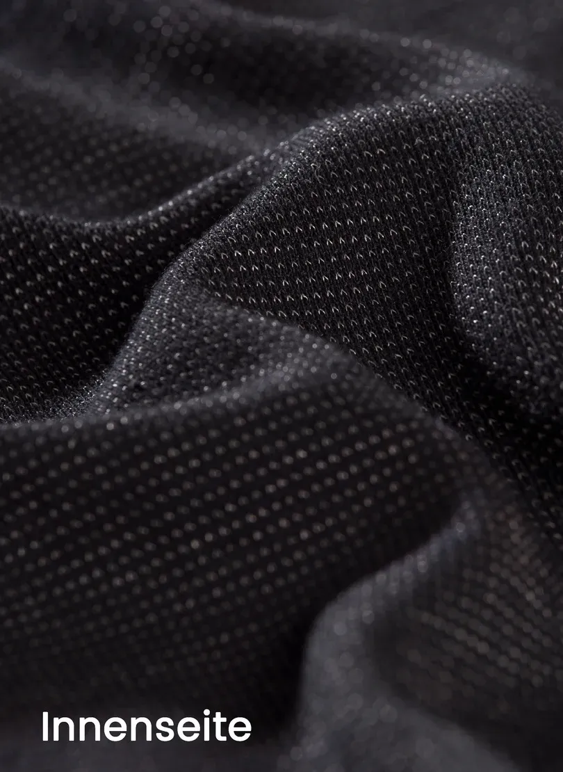 Внутри: 66% хлопок, 22% полиэстер, 12% серебряное волокно.