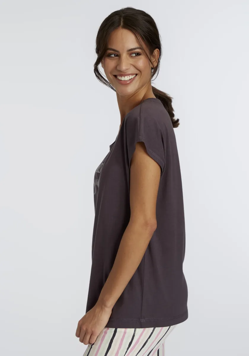Пижамный топ Vivance Dreams с принтом спереди, антрацит