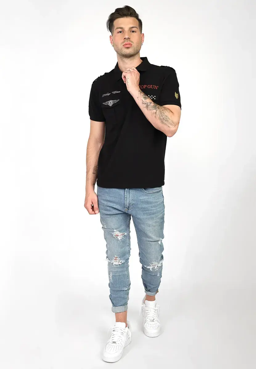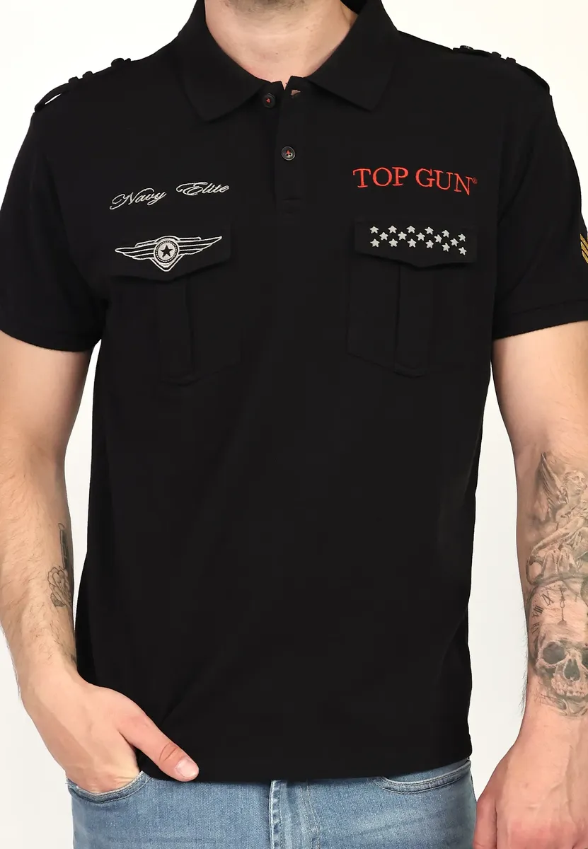 Рубашка имеет удобный воротник, который застегивается на две пуговицы. Современный крой делает его особенно удобным в ношении. Красивая вышивка Top Gun и нагрудные карманы спереди придают этой футболке-поло неповторимый вид.